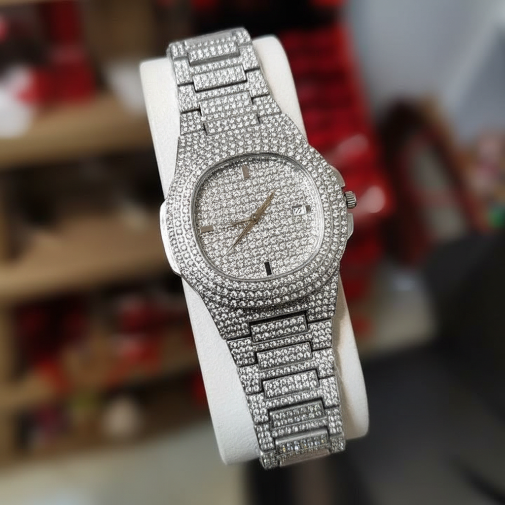 Iced Out Men Watch Diamond Steel Is Designed With Luxury Stylish Design And Durable Quality Offering Timeless Appeal And Reliable Performance. It Combines Fashion With Practical Use Making It Suitable For Daily Wear And Special Occasions. The Watch Ensures Dependable Quality Along With Sophisticated Look Providing Confidence Charm And Style. Iced Out Men Watch Diamond Steel Is A Perfect Choice For Those Seeking Elegance Reliability And Fashion Statement In One Accessory.